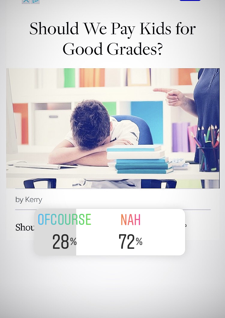 We took a poll on intentional_parenting and the results were as below. The evidence weighs heavily against PAYING in favor of rewarding EFFORT.