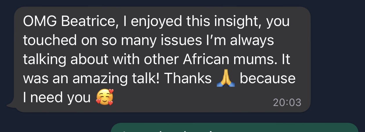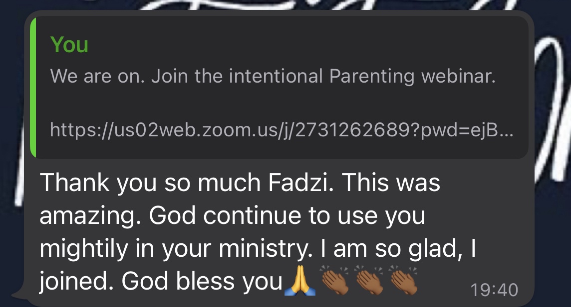 This 👆🏾is some of the feedback we get from our sessions and it means a lot. Intentional Parenting is all about adding value to your lives. That is at the core of what we are trying to achieve in empowering and supporting parents. That hour you spend away from your loved ones, should help you become the parent you want to be. I pray and hope that our vision is as clear as day to you too.